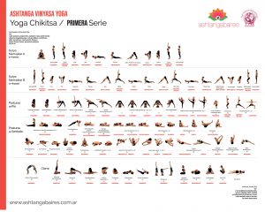 A continuación la Guía para la Primera Serie de Ashtanga Vinyasa Yoga, llamada Yoga Chikitsa, extraida del libro “Ashtanga Yoga” de Alejandro Chiarella: